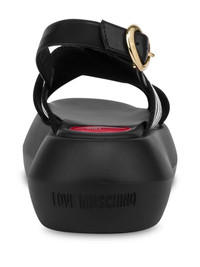 logo-print sandals Highlights - Black - Buckle-fastening slingback strap - Crossover strap at the toe - Round open toe - Platform sole Imported Composition Sole: Rubber 100% Lining: Polyurethane 100% Outer: Polyester 95%, Calf Leather 5%