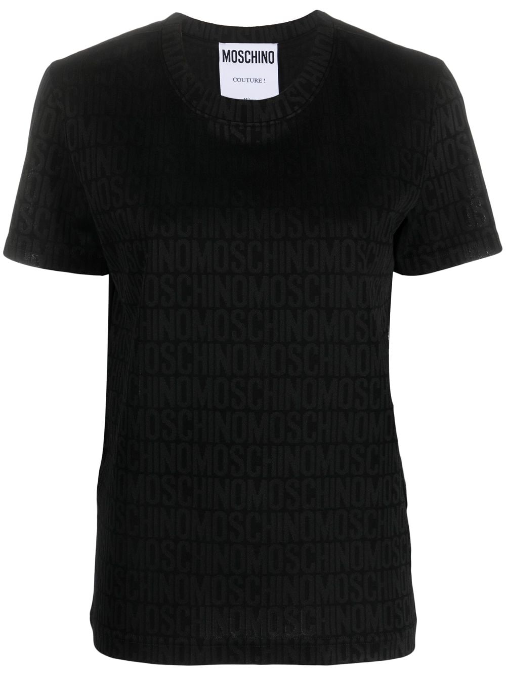 logo-print short-sleeve T-shirt Highlights - Black - Tonal design - All-over logo print - Crew neck - Short sleeves - Straight hem Made in Italy Composition Polyester 53%, Cotton 47% SIZE & FIT Model measurements Height 5 ft 10 in(1.77 m) Bust/Chest 31.88 in(81 cm) Hips 36.22 in(92 cm) Waist 24.01 in(61 cm) FittingInformation Designed for a slim fit that sits just away from the body offering a close yet comfortable fit Made from a midweight non-stretch fabric, this piece offers minimal elasticity when worn This piece fits true to size – take your usual size Washing instructions Dry Clean Only
