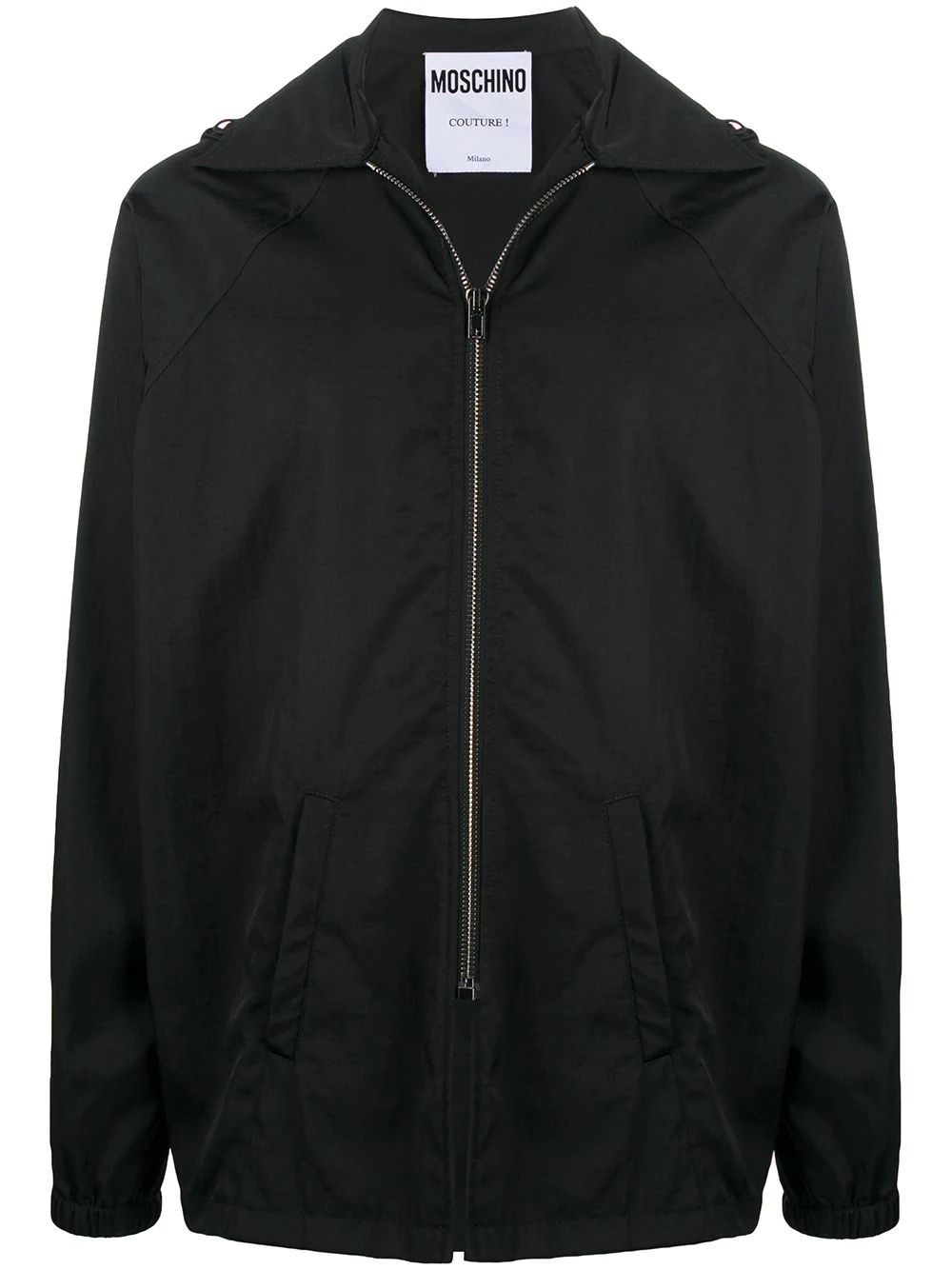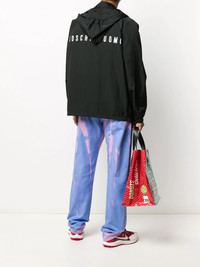 logo print windbreaker No bad weather can put you down. Decorated with a logo print to the rear, this hooded windbreaker from Moschino has got you covered and ready to go. For cool guys only. Highlights - Black/white - Drawstring hood - Spread collar - Front zip fastening - Long raglan sleeves - Elasticated cuffs - Logo print to the rear - Two front slit pockets Made in Italy Composition Polyamide 100% SIZE & FIT Model measurements Height 6 ft 1 in(1.85 m) Bust/Chest 37.79 in(96 cm) Hips 37.4 in(95 cm) Waist 30.7 in(78 cm) Washing instructions Hand Wash