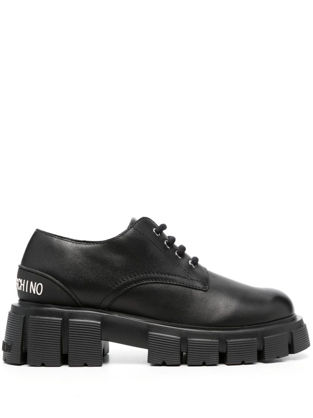 logo-raised detail leather Derby shoes Highlights - Black/white - Calf leather - Raised logo detail - Round toe - Front lace-up fastening - Branded insole - Chunky rubber lug sole Imported Composition Leather 100% SIZE & FIT Measurement HEEL 1.96 in(5 cm) Sole height 0.98 in(2.5 cm)
