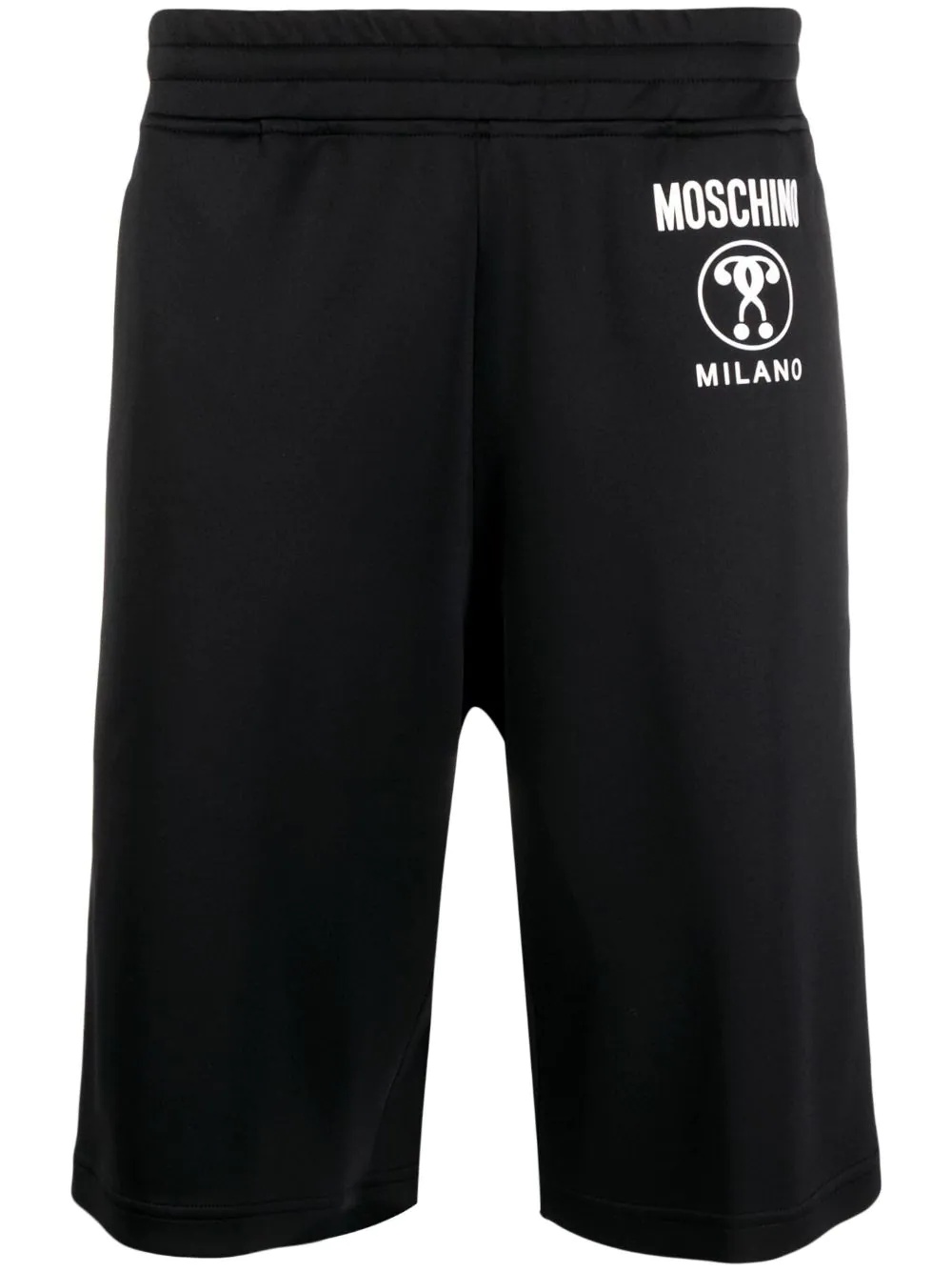 logo-tape track shorts Moschino presents a casual look with these track shorts. Crafted from soft cotton, they boast a relaxed silhouette and contrasting logo panels to the sides. Made in Italy Composition Lining: Cotton 100% Outer: Polyester 90%, Spandex/Elastane 10% SIZE & FIT Model measurements Height 6 ft 1 in(1.86 m) Bust/Chest 35.82 in(91 cm) Hips 35.43 in(90 cm) Waist 28.74 in(73 cm) FittingInformation This piece fits true to size. We recommend you get your regular size Designed for a slim fit at the waist and loose over the leg Made with a mid-weight stretch fabric Washing instructions Hand Wash