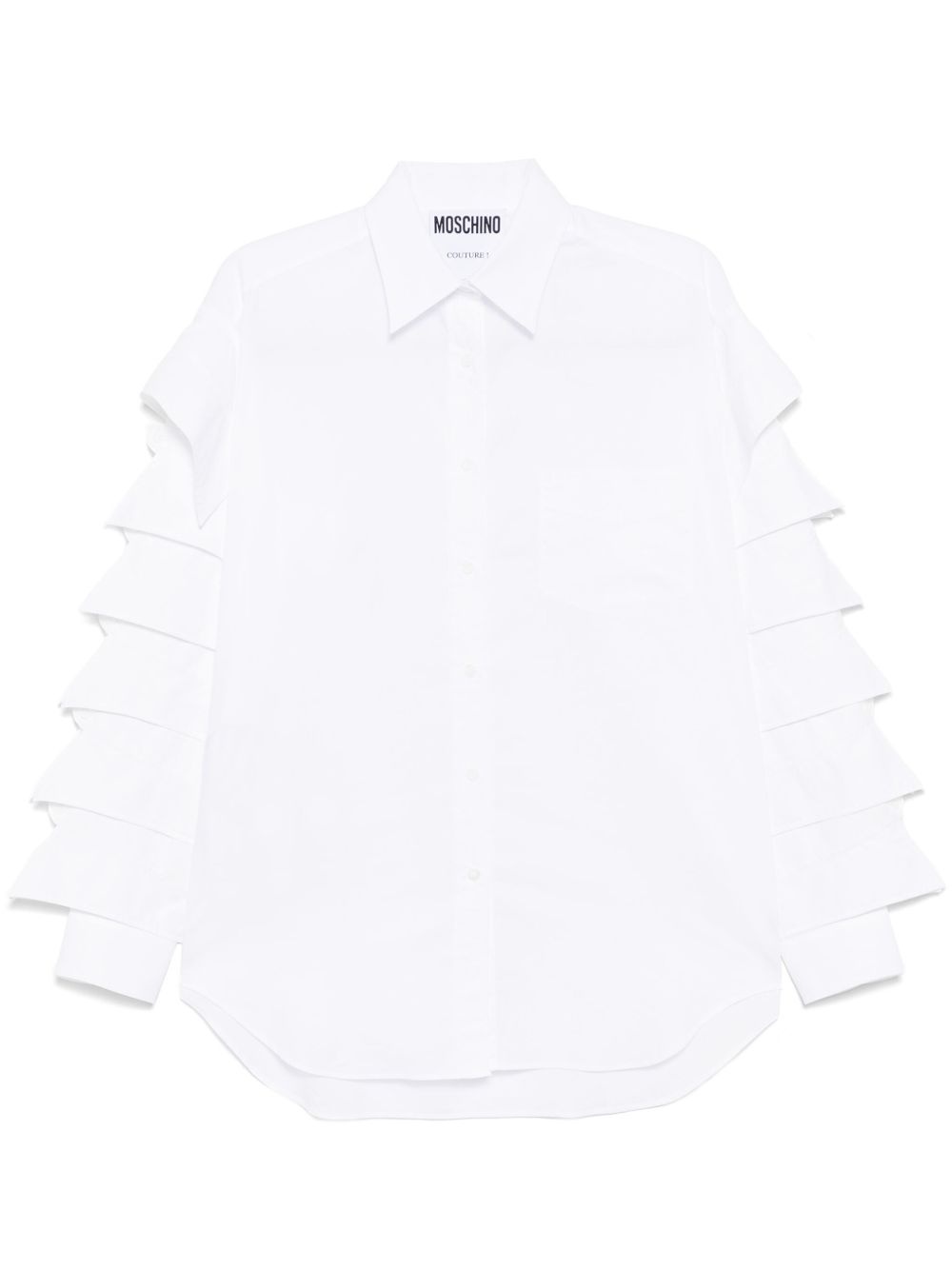 long-sleeved shirt Highlights - White - Front button fastening - Layered details - Curved hem Made in Italy Composition Cotton 100% SIZE & FIT Model measurements Height 5 ft 10 in(1.77 m) Bust/Chest 31.49 in(80 cm) Hips 35.43 in(90 cm) Waist 25.19 in(64 cm) FittingInformation Designed to be unstructured, offering a loose fit throughout Made from a midweight non-stretch fabric Washing instructions Machine Wash