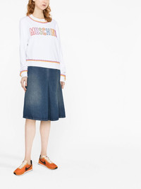 macrame-trim cotton sweatshirt Moschino lives up to its playful reputation with this sweatshirt. It features colourful macrame trims, a recurring motif in the SS23 collection, as well as a bright logo at the chest. Made in Italy Composition Cotton 100% SIZE & FIT Model measurements Height 5 ft 10 in(1.78 m) Bust/Chest 31.49 in(80 cm) Hips 35.43 in(90 cm) Waist 24.4 in(62 cm) FittingInformation This piece fits true to size. We recommend you get your regular size Cut for a relaxed fit Made with a mid-weight fabric Washing instructions Hand Wash