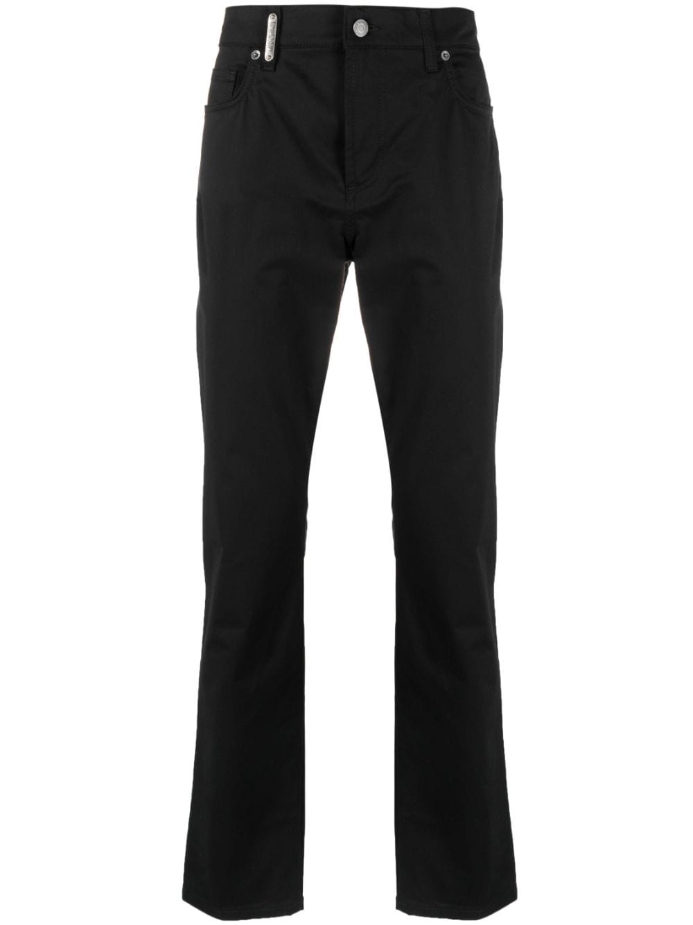 mid-rise straight-leg trousers Highlights - Black - Stretch-cotton - Logo plaque - Belt loops - Front button fastening - Mid-rise - Straight leg - Classic five pockets Made in Italy Composition Cotton 96%, Spandex/Elastane 4% SIZE & FIT Model measurements Height 6 ft 2 in(1.87 m) Bust/Chest 32.28 in(82 cm) Hips 33.85 in(86 cm) Waist 25.98 in(66 cm) FittingInformation Designed for a slim fit, offering a comfortable fit that sits just away from the leg Made from a midweight stretch fabric, this piece offers elasticity and flexibility when worn This piece fits true to size – take your usual size