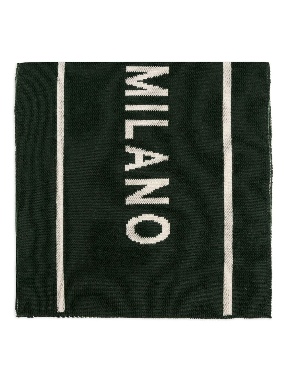 Milano-logo scarf Highlights - Dark green - Milano intarsia-knit lettering - Cream stripes - Rectangular shape Made in Italy Composition Wool 50%, Acrylic 50% SIZE & FIT Measurement LENGTH 70.86 in(180 cm) WIDTH 11.81 in(30 cm)