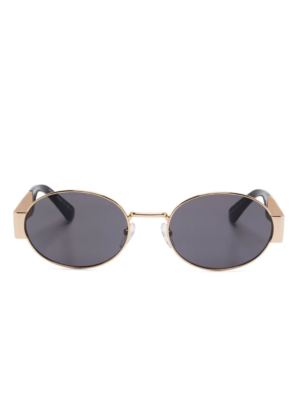 oval-frame sunglasses Highlights - Gold-tone - Nose pads - Curved tips - These glasses come with a protective case. Imported Composition Metal 100%, Acetate 100% SIZE & FIT Measurement Arm Length 5.7 in(14.5 cm) Bridge Width 0.78 in(2 cm) Lens Diameter 1.96 in(5 cm) Total Width 5.51 in(14 cm)