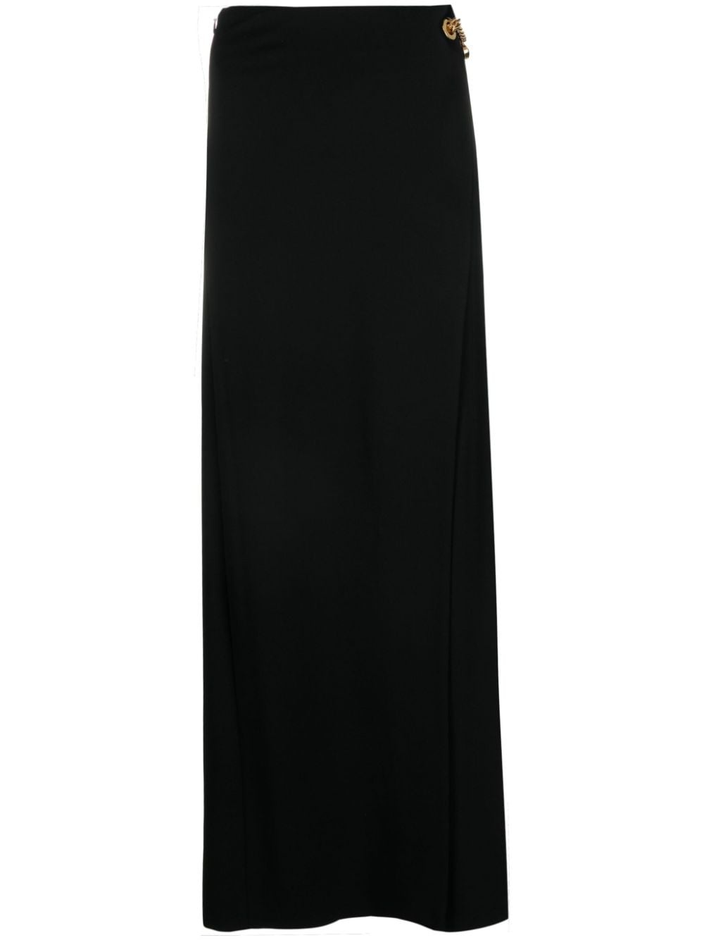 padlock-detail asymmetric maxi skirt Highlights - Black - Stretch-design - Asymmetric design - Chain-link detailing - Padlock detail - Gold-tone hardware - High-waisted - Side zip fastening - Thigh-high front slit - Straight hem - Maxi Made in Italy Composition Viscose 65%, Polyamide 30%, Elastane 5% SIZE & FIT Model measurements Height 5 ft 11 in(1.8 m) Bust/Chest 30.7 in(78 cm) Hips 35.03 in(89 cm) Waist 24.4 in(62 cm) FittingInformation This maxi-length skirt is intended to be worn high on the waist Made from a midweight stretch fabric, this piece offers elasticity and flexibility when worn This piece fits true to size – take your usual size