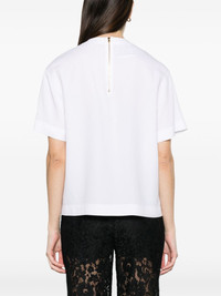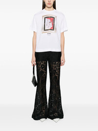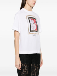 painting-print crepe blouse Decorated with an acrylic painting print named 'still life with heart', this white T-shirt by Moschino is designed for a relaxed fit. A gold-tone zip fastening adorns the rear. Highlights - White - Crepe texture - Painting and logo print to the front - Round neck - Rear zip fastening - Short sleeves - Straight hem Made in Italy Composition Acetate 70%, Viscose 30% SIZE & FIT Model measurements Height 5 ft 11 in(1.8 m) Bust/Chest 31.49 in(80 cm) Hips 36.22 in(92 cm) Waist 25.59 in(65 cm) FittingInformation Designed for a relaxed fit, this piece allows for comfort and movement when worn Made from a midweight non-stretch fabric This piece fits true to size – take your usual size Washing instructions Hand Wash
