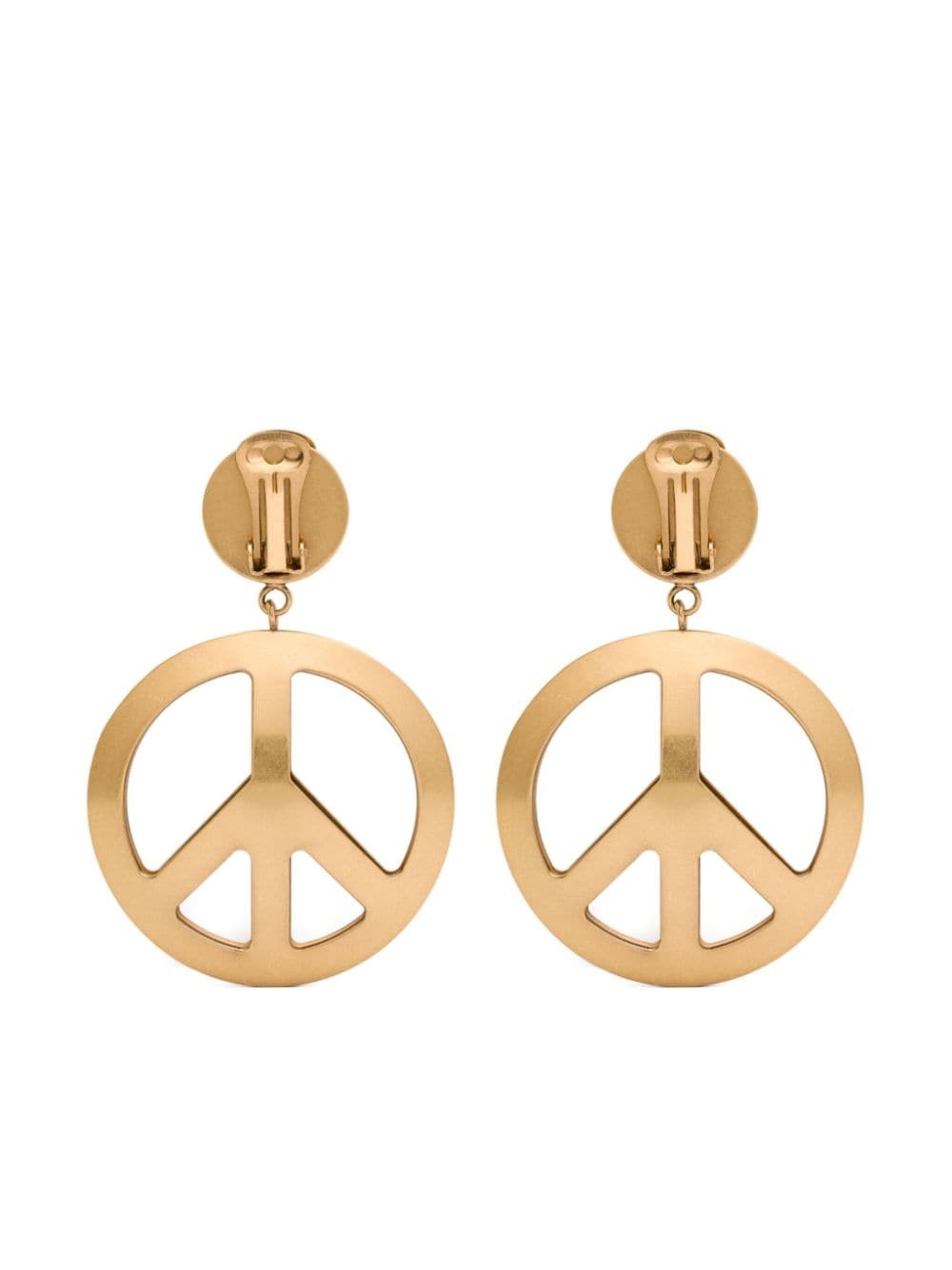 peace sign clip-on earrings Highlights - Gold plated - Polished finish - Peace sign motif - Dangle design - Clip-on design - Engraved logo - These earrings come as a pair. Made in Italy SIZE & FIT Model measurements Height 5 ft 10 in(1.78 m) Bust/Chest 33.85 in(86 cm) Hips 36.61 in(93 cm) Waist 26.77 in(68 cm) Measurement HEIGHT 3.22 in(8.2 cm) Weight (single earring) 32 g(32 g) WIDTH 2.12 in(5.4 cm)