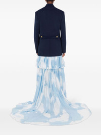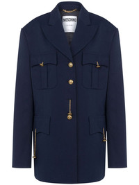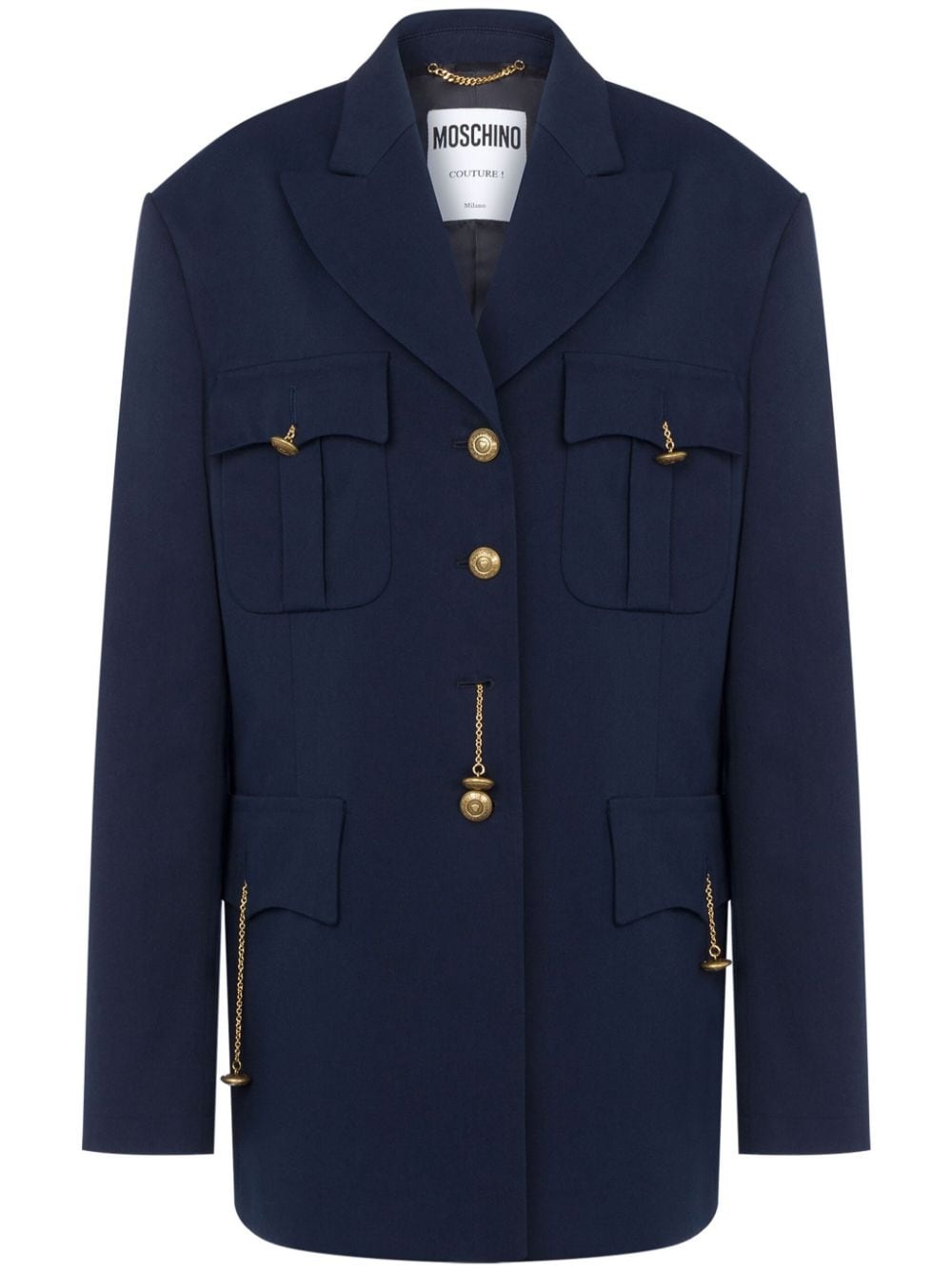 peak-lapel cotton-blend coat Highlights - Navy blue - Cotton-wool blend - Gold-tone hardware - Peak lapels - Front button fastening - Two chest flap pockets - Front flap pockets - Long sleeves - Straight hem Made in Italy Composition Cotton 90%, Wool 10%