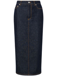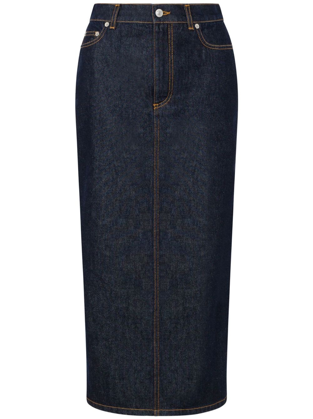 pencil midi skirt Highlights - Navy blue - Front button and zip fastening - Classic five pockets - Belt loops - Rear slit Made in Italy Composition Cotton 100%