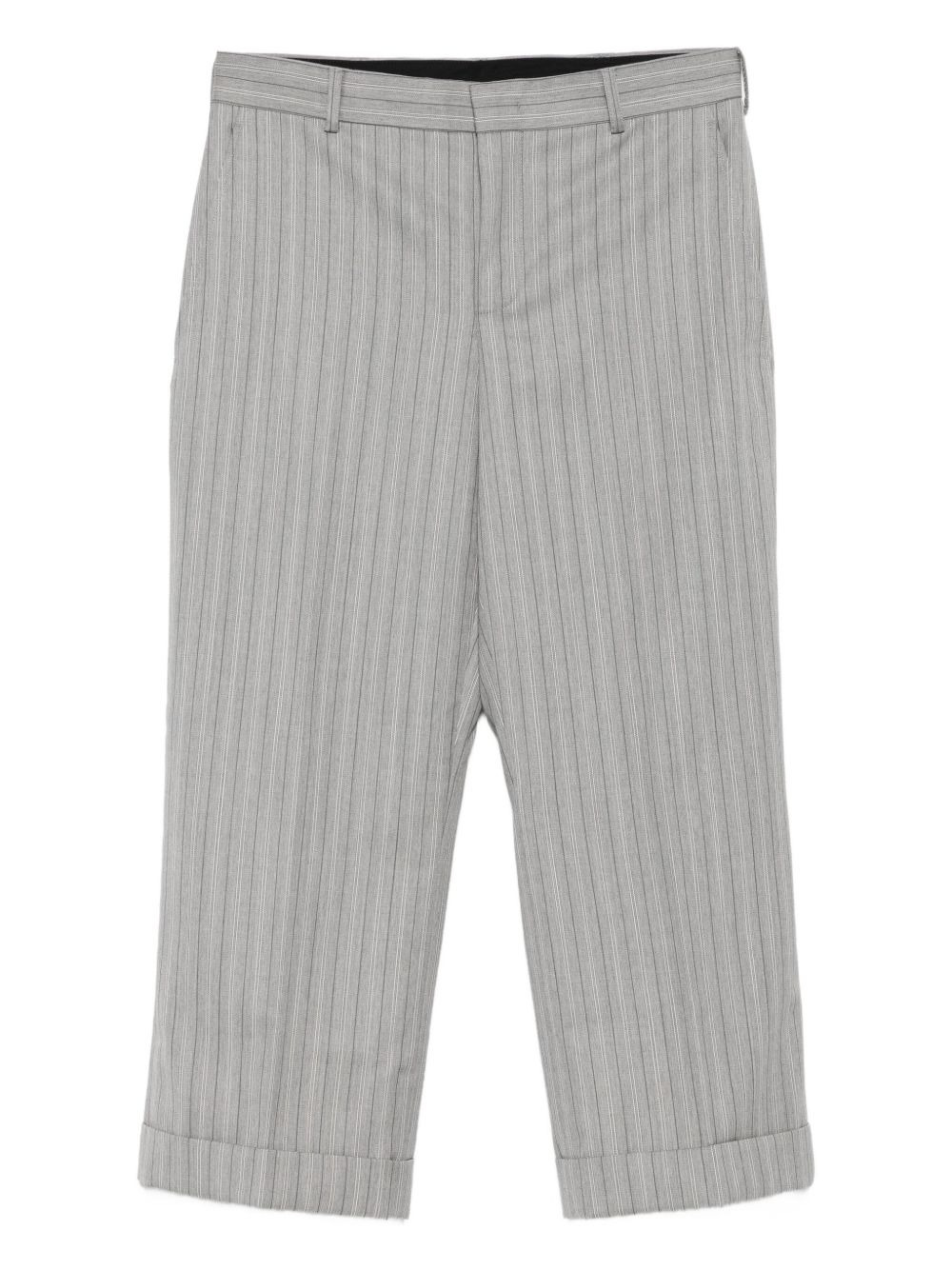 pinstripe cropped trousers Highlights - Grey - Pinstripe pattern - Mid-rise waist - Cuffed hems - Belt loops - Button fly Imported Composition Filling: Cotton 100% Outer: Virgin Wool 100% Washing instructions Dry Clean Only