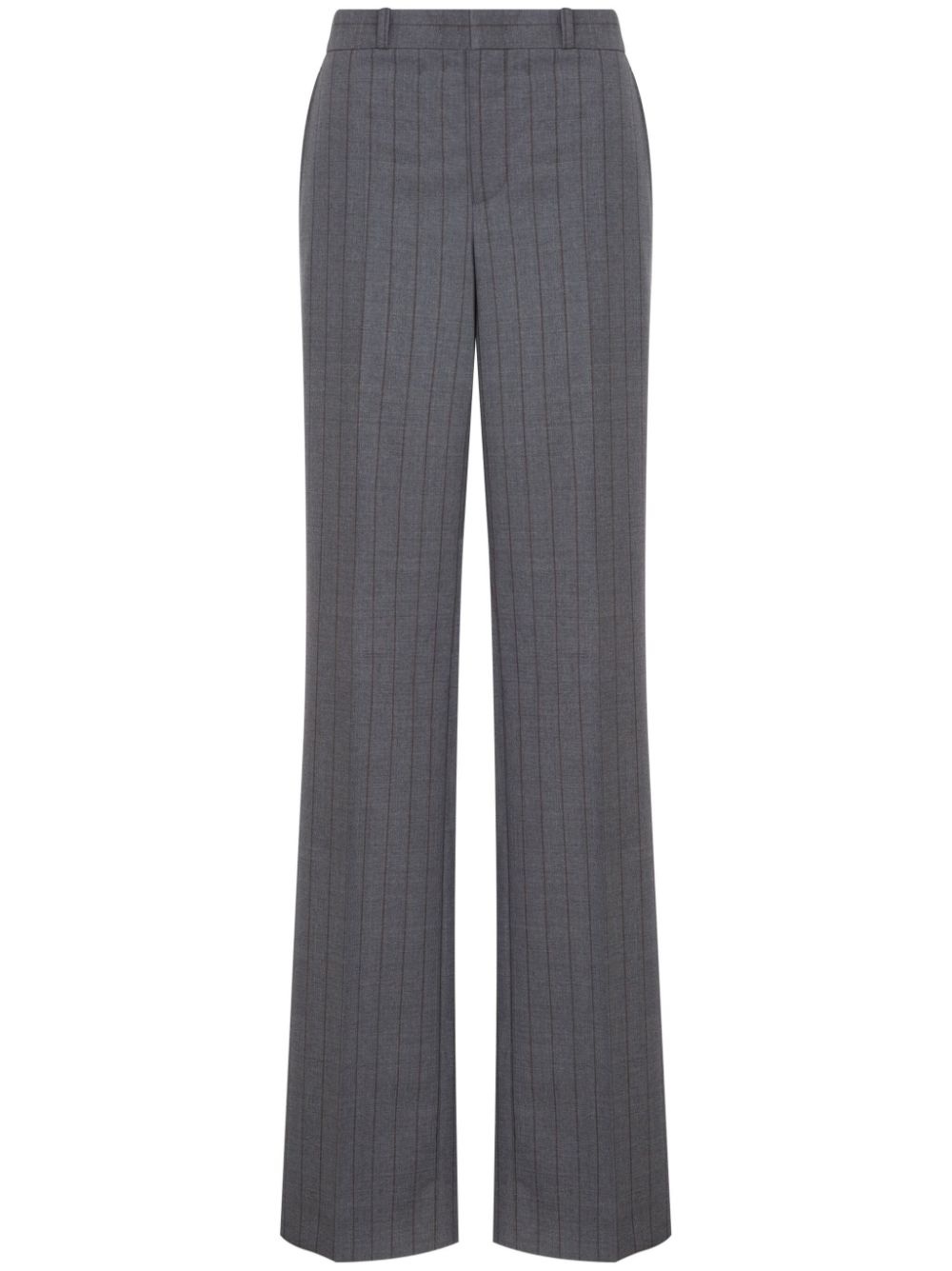 pinstriped trousers Highlights - Medium grey - Concealed front button, hook and zip fastening - Belt loops - Two side inset pockets - Rear welt pocket - Rear flap pocket Made in Italy Composition Virgin Wool 100%