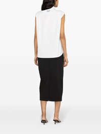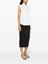 pintuck-detailing sleeveless shirt Moschino injects a playful spin on classic shirting with this sleeveless rendition. It's cut from white cotton blend poplin and elevated with pintuck detailing and crystal buttons on the front. Highlights - White - Cotton blend - Poplin texture - Crystal-embellished buttons - Pintuck detailing - Patch detail to the rear - Spread collar - Front button fastening - Sleeveless - Curved hem Made in Italy Composition Cotton 65%, Polyamide 35% SIZE & FIT Model measurements Height 5 ft 10 in(1.78 m) Bust/Chest 31.49 in(80 cm) Hips 35.03 in(89 cm) Waist 23.62 in(60 cm) FittingInformation Designed for a relaxed fit, this piece allows for comfort and movement when worn Made from a midweight non-stretch fabric This piece fits true to size – take your usual size