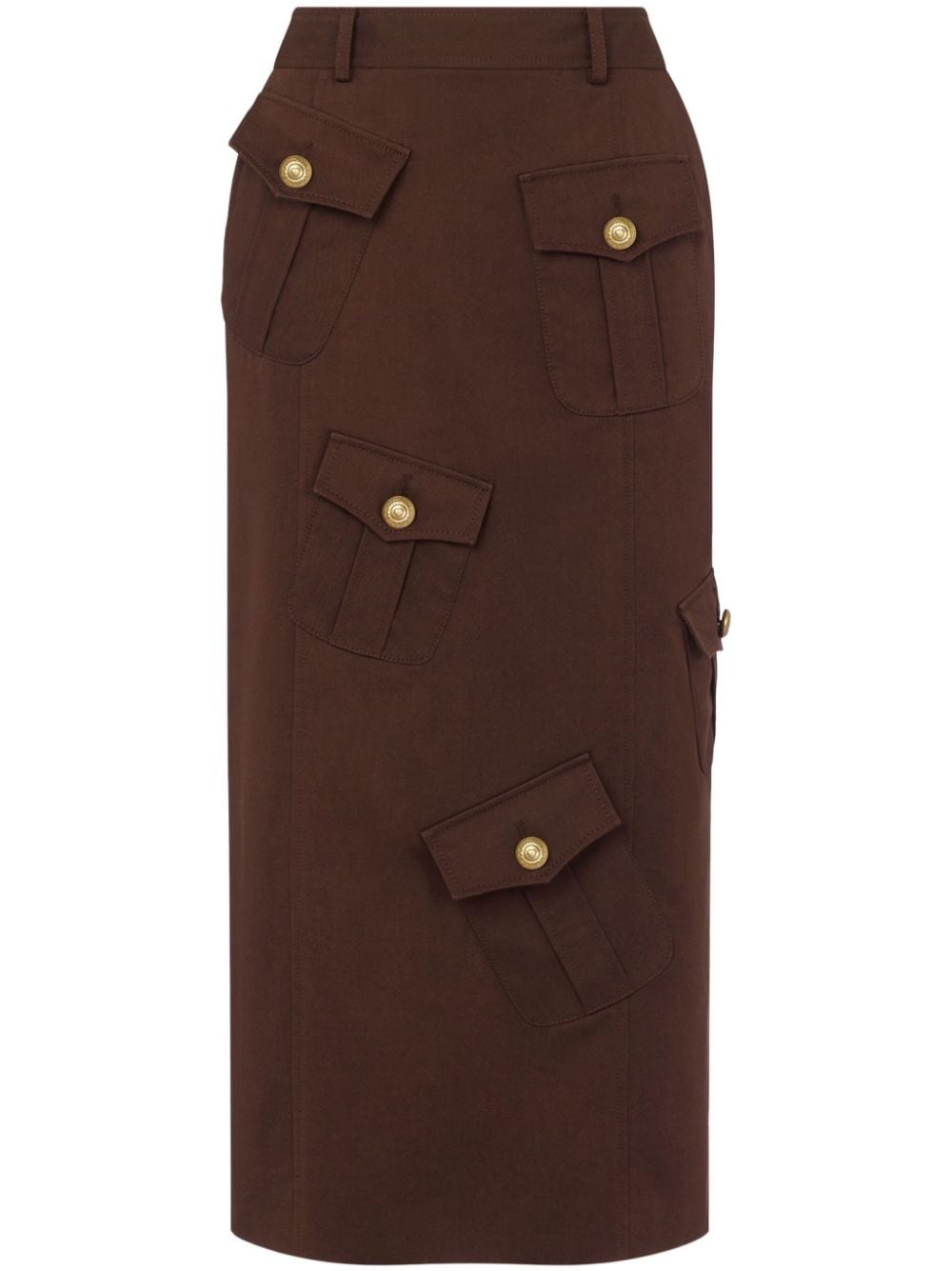 pockets cotton-wool blend skirt Highlights - Chocolate brown - Cotton-wool blend - Multiple patch pockets - Belt loops - Concealed rear zip fastening - Rear slit Made in Italy Composition Cotton 90%, Wool 10%