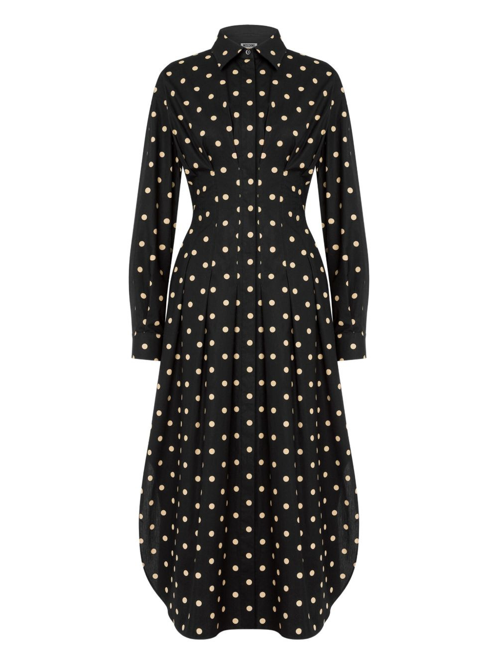 polka-dot pleated dress Highlights - Black - Polka dot pattern - Pleated skirt - Classic collar - Long sleeves - Front button fastening Made in Italy Composition Cotton 100% Washing instructions Machine Wash