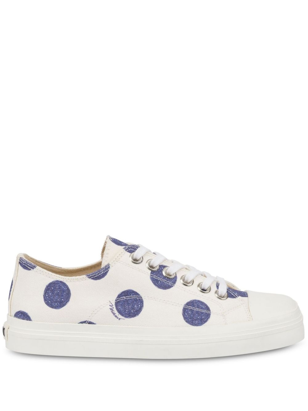 polka dot-print sneakers Highlights - White - Front lace-up fastening - Rubber toecap - Round toe - Flat rubber sole Imported Composition Outer: Cotton 100% Sole: Rubber 100% Lining: Fabric 100%