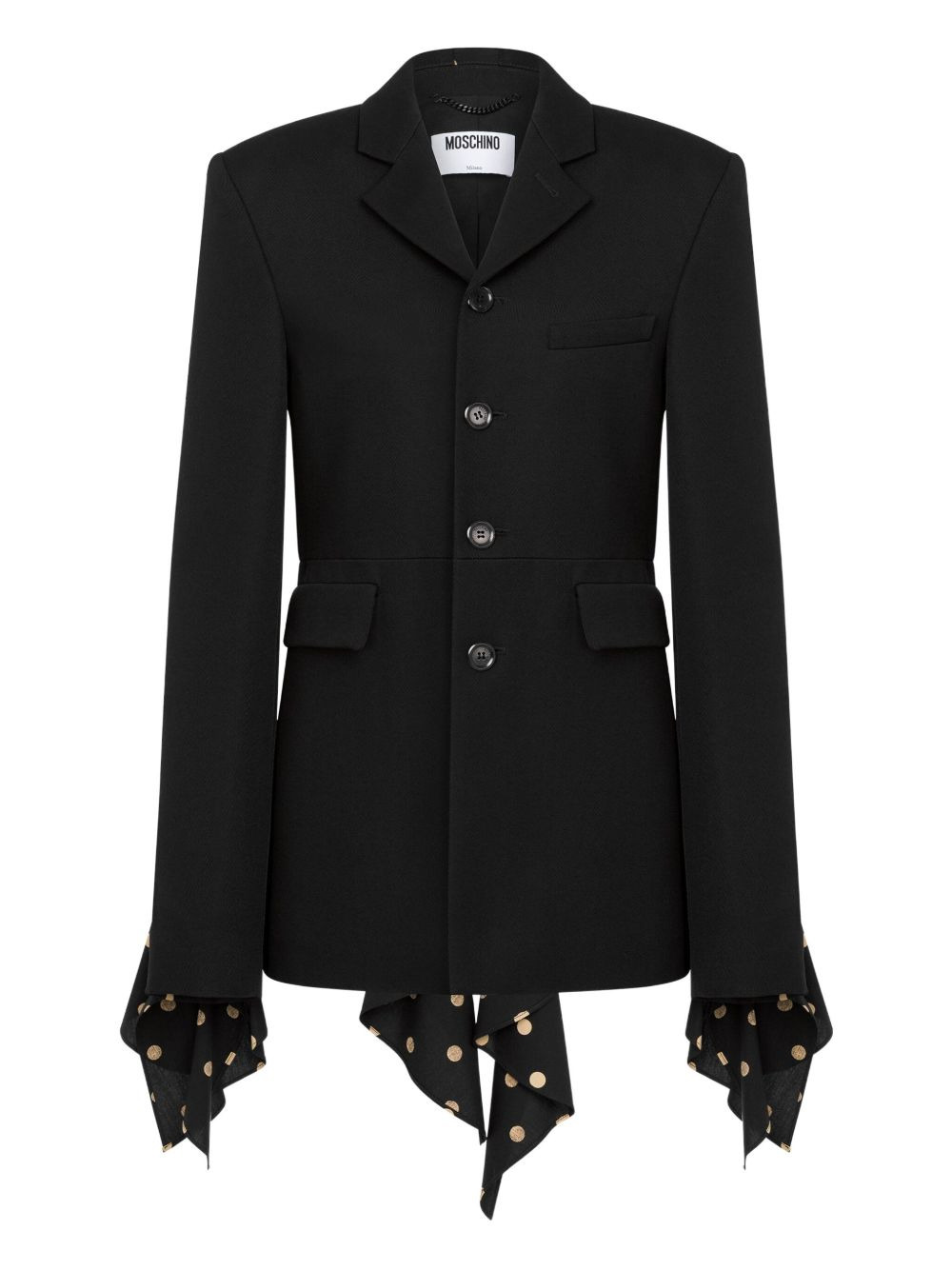 polka-dot ruffle blazer Highlights - Black - Polka-dot detail - Ruffle embellishment - Button fastening - Long sleeves Made in Italy Composition Virgin Wool 60%, Viscose 40% Washing instructions Dry Clean Only