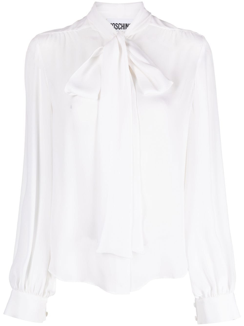 pussy-bow collar silk blouse cloud white silk pussy-bow collar front button fastening long sleeves buttoned-cuff sleeves Imported Composition Silk 100% SIZE & FIT Model measurements Height 5 ft 11 in(1.8 m) Bust/Chest 33.07 in(84 cm) Hips 37.4 in(95 cm) Waist 25.19 in(64 cm) FittingInformation This piece fits true to size. We recommend you get your regular size Cut for a loose fit Made with a lightweight non-stretch fabric Washing instructions Dry Clean Only