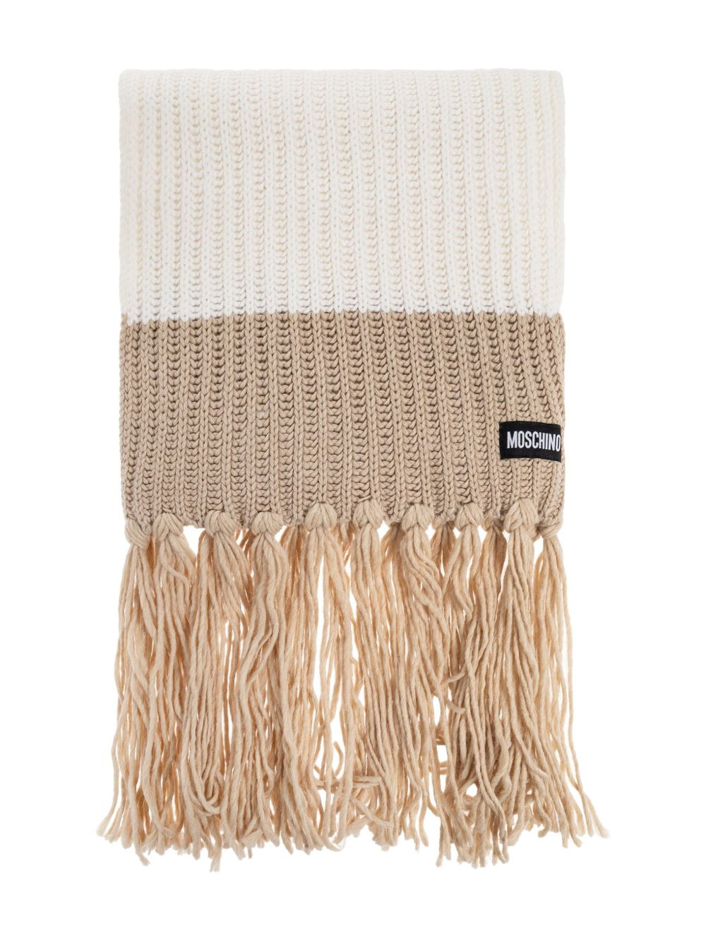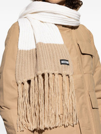 ribbed-knit fringed scarf Highlights - Off-white and beige - Ribbed knit - Two-tone design - Fringe trim - Wool Made in Italy Composition Wool 37%, Viscose 23%, Nylon 20%, Cashmere 10%, Acrylic 10% SIZE & FIT Measurement LENGTH 70.86 in(180 cm) WIDTH 11.81 in(30 cm) Washing instructions Read Manufacturer Guidelines