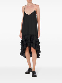 ruffled midi dress Highlights - Black - V-neck - Sleeveless - Tiered skirt - Asymmetric hem Made in Italy Composition Viscose 100%