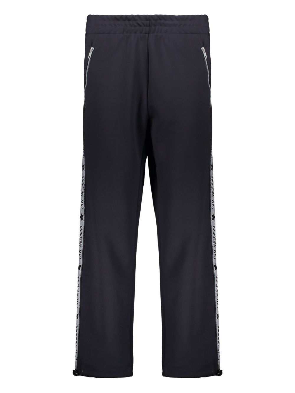 side-stripe trousers Highlights - Dark blue - Elasticated waistband - Two side zip-fastening pockets - Rear zip-fastening pocket - Drawstring cuffs Imported Composition Polyester 81%, Viscose 12%, Elastane 7%