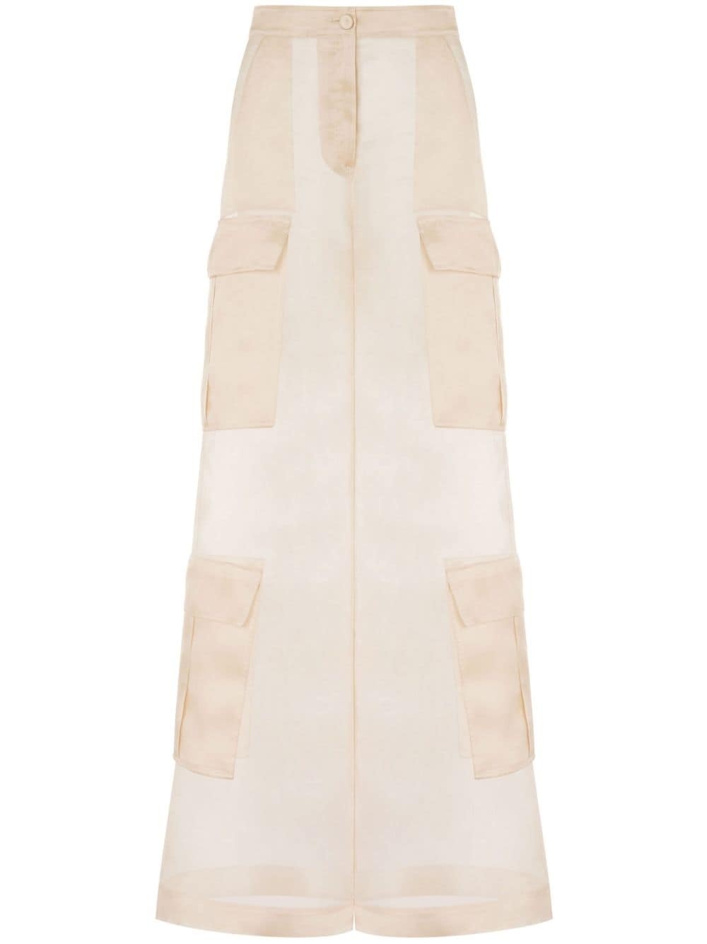 silk wide-leg trousers Highlights - Beige - Silk - Organza - Semi-sheer construction - High-waisted - Front button and zip fastening - Multiple cargo pockets - Wide leg Made in Italy Composition Silk 100%