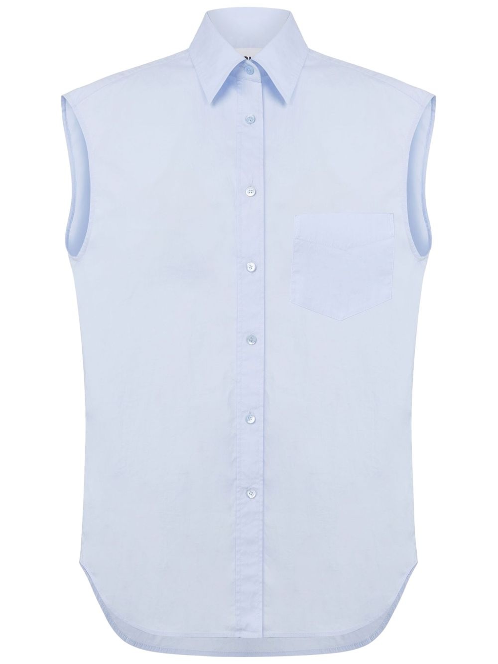 sleeveless shirt Highlights - Sky blue - Front button fastening - Chest patch pocket - Straight-point collar - Curved hem Made in Italy Composition Cotton 94%, Elastane 6% SIZE & FIT FittingInformation Designed to be unstructured, offering a loose fit throughout Made from a midweight stretch fabric, this piece offers elasticity and flexibility when worn