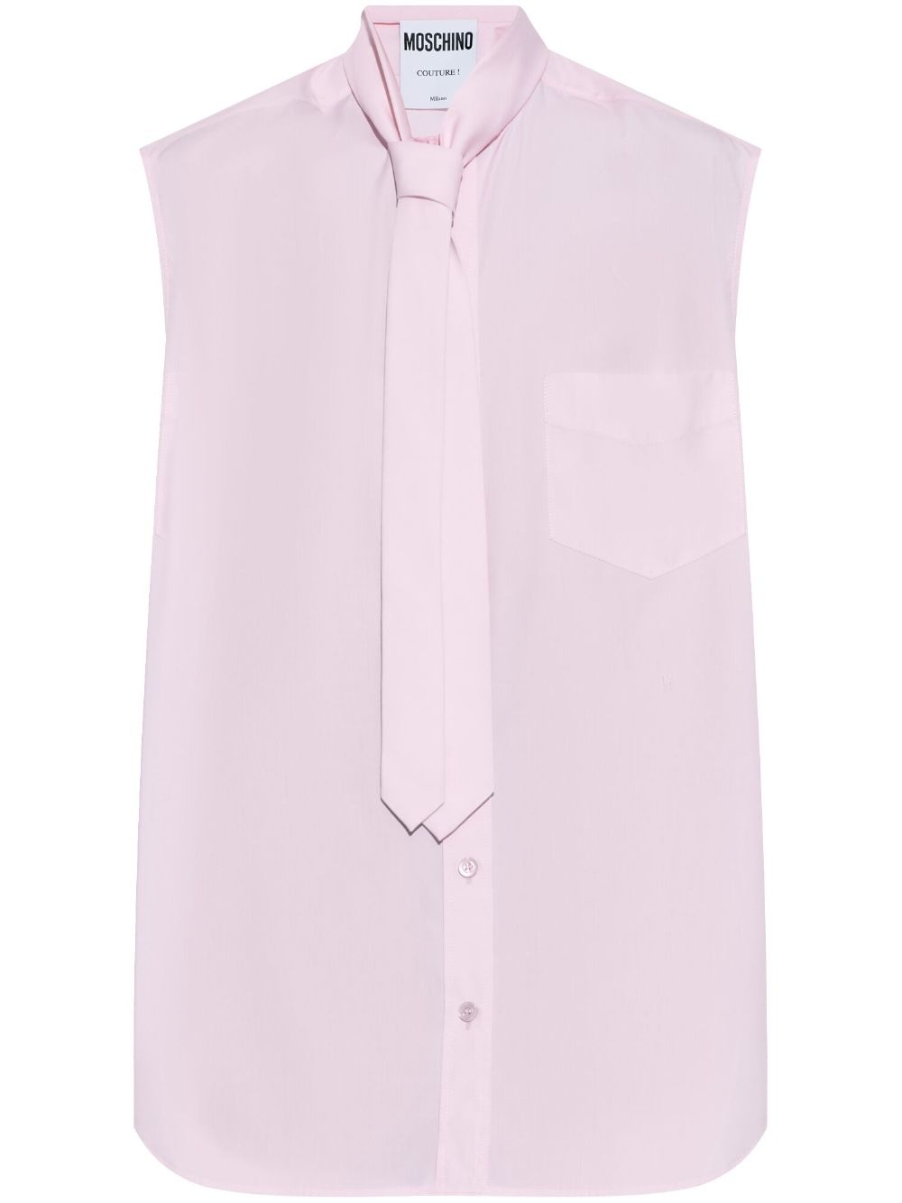 sleveless cotton shirt Highlights - Light pink - Cotton - Front button fastening - Tie neck - Sleeveless - Chest patch pocket - Curved hem Made in Italy Composition Cotton 100% SIZE & FIT FittingInformation Designed to be unstructured, offering a loose fit throughout Made from a midweight non-stretch fabric