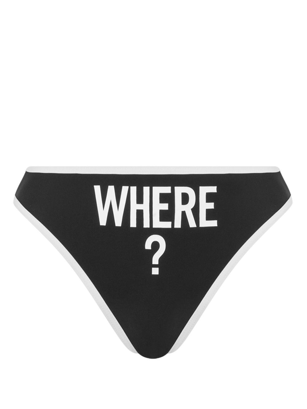 slogan-print bikini bottoms Highlights - Black/white - Stretch-design - High-rise - Contrasting trim - Slogan print to the front - Logo print to the rear - Be mindful to try on swimwear over your own garments. Made in Italy Composition Polyamide 80%, Elastane 20%