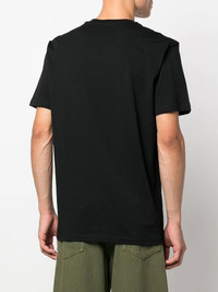 slogan-print short-sleeve T-shirt jet black cotton jersey knit slogan print to the front round neck short sleeves straight hem Imported Composition Cotton 100% SIZE & FIT Model measurements Height 6 ft 1 in(1.85 m) Bust/Chest 35.82 in(91 cm) Hips 37.79 in(96 cm) Waist 29.13 in(74 cm) FittingInformation This piece fits true to size. We recommend you get your regular size Cut for a relaxed fit Made with a mid-weight fabric Washing instructions Hand Wash