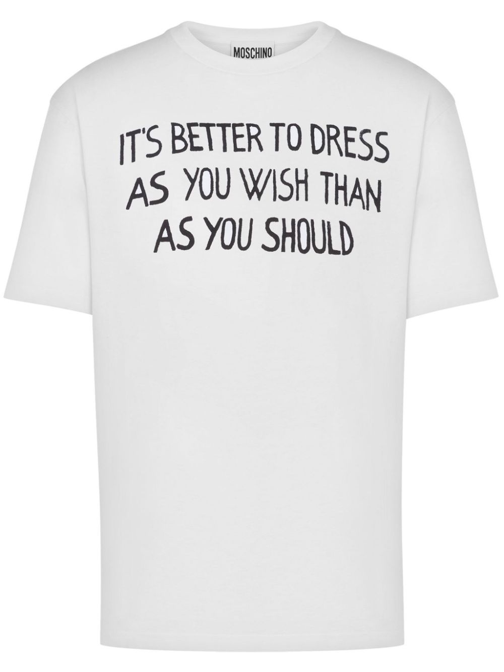 slogan-print T-shirt Highlights - White - Cotton - Jersey texture - Slogan print to the front - Crew neck - Short sleeves - Logo print to the rear Imported Composition Cotton 100%