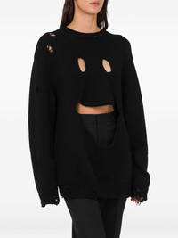 smiley face distressed sweater Highlights - Black - Smiley face cut-outs - Distressed edges - Wool - Crew neck - Long sleeves Made in Italy Composition Virgin Wool 100% Washing instructions Dry Clean Only