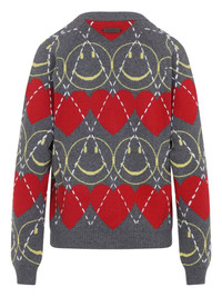 smiley-heart cardigan Highlights - Grey - Smiley face pattern - Heart pattern - Argyle pattern - Button fastening - Long sleeves Made in Italy Composition Wool 36%, Polyamide 32%, Viscose 27%, Cashmere 5% SIZE & FIT Measurement LENGTH 23.22 in(59 cm) WAIST 38.58 in(98 cm) BUST 40.94 in(104 cm) Shoulder Width 20.86 in(53 cm) Washing instructions Read Manufacturer Guidelines
