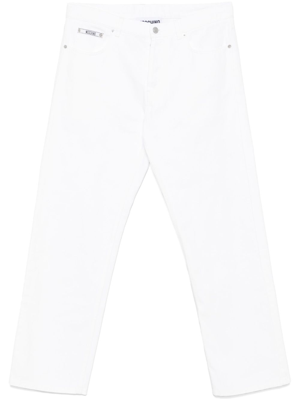 straight-leg jeans Highlights - White - Front button fastening - Belt loops - Classic five pockets - Embroidered logo to the front Made in Italy Composition Cotton 100% SIZE & FIT Model measurements Height 6 ft 2 in(1.87 m) Bust/Chest 38.97 in(99 cm) Hips 37.99 in(96.5 cm) Waist 29.52 in(75 cm) FittingInformation Designed with a straight leg, these jeans allow for an unrestricted and comfortable fit over the leg Sturdy and hard-wearing, this denim piece offers no stretch