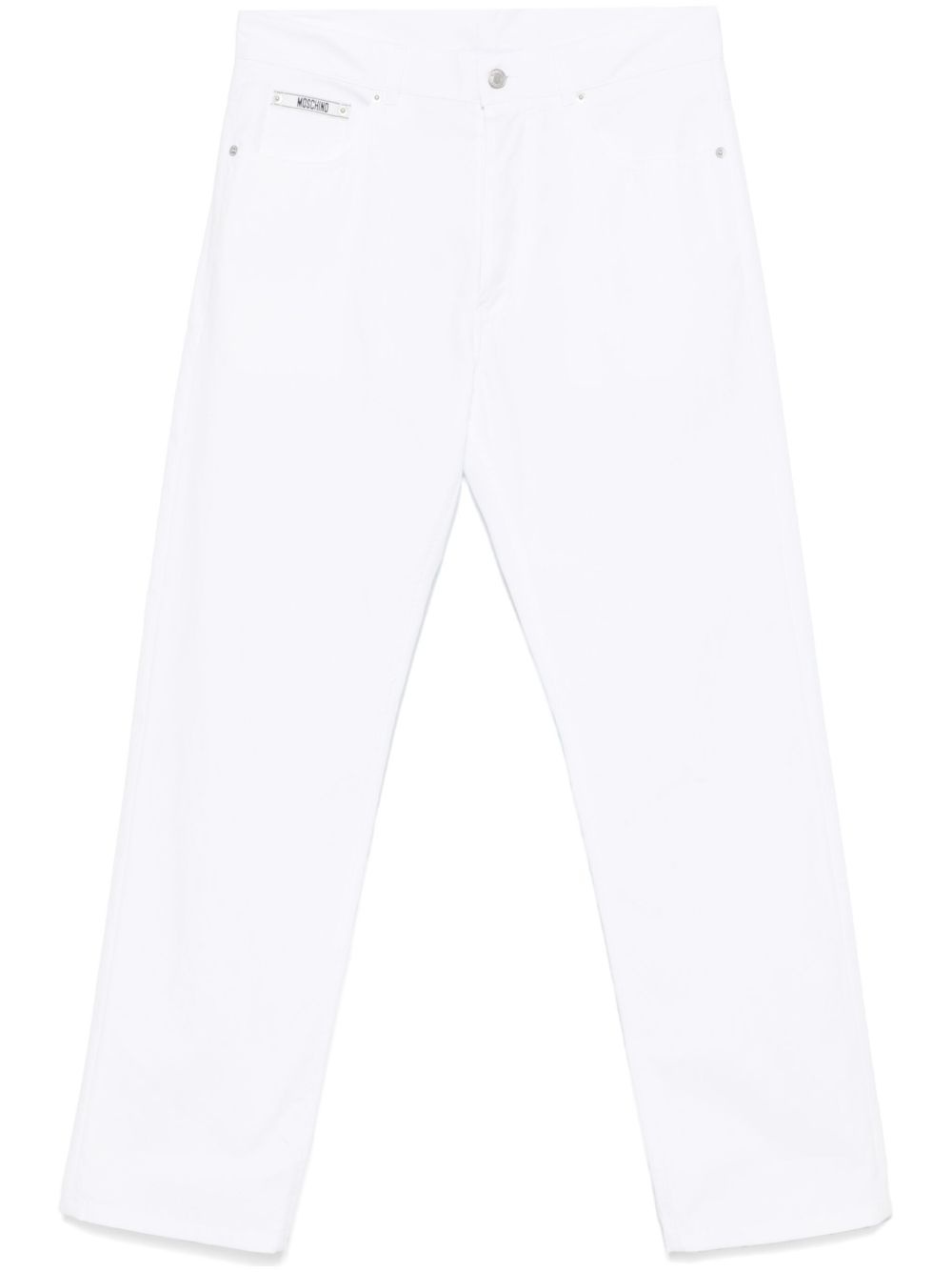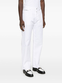 straight-leg trousers Highlights - White - Button fly fastening - Belt loops - Classic five pockets - Logo patch to the side Made in Italy Composition Cotton 75%, Polyamide 25% SIZE & FIT Model measurements Height 6 ft 0 in(1.84 m) Bust/Chest 35.82 in(91 cm) Hips 37 in(94 cm) Waist 28.34 in(72 cm) FittingInformation Designed for a straight-leg, allowing for an unrestricted and comfortable fit over the leg Made from a midweight non-stretch fabric