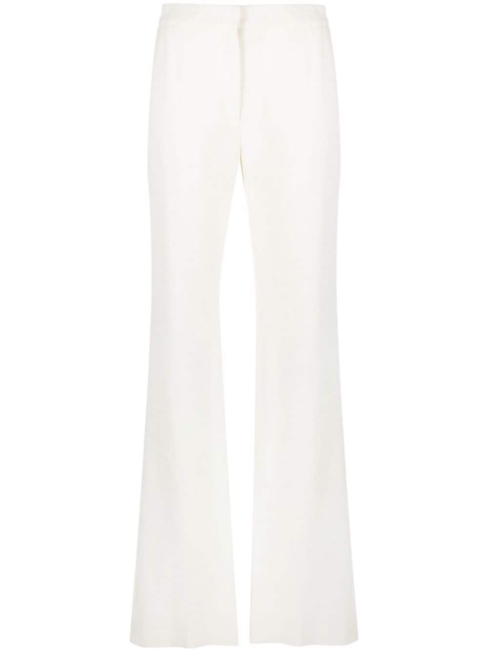 flared trousers Highlights - Cream white - Concealed fly and button fastening - Two side inset pockets - Straight leg - Straight hem Made in Italy Composition Outer: Viscose 58%, Virgin Wool 40%, Elastane 2% Lining: Acetate 60%, Cupro 40% SIZE & FIT Model measurements Height 5 ft 10 in(1.78 m) Bust/Chest 29.92 in(76 cm) Hips 34.64 in(88 cm) Waist 23.62 in(60 cm) FittingInformation Designed with a flared hem, these trousers allow for a close fit at the waist with a slim fit over the leg and widening towards the hem Made from a midweight stretch fabric, this piece offers elasticity and flexibility when worn This piece fits true to size – take your usual size Washing instructions Dry Clean Only