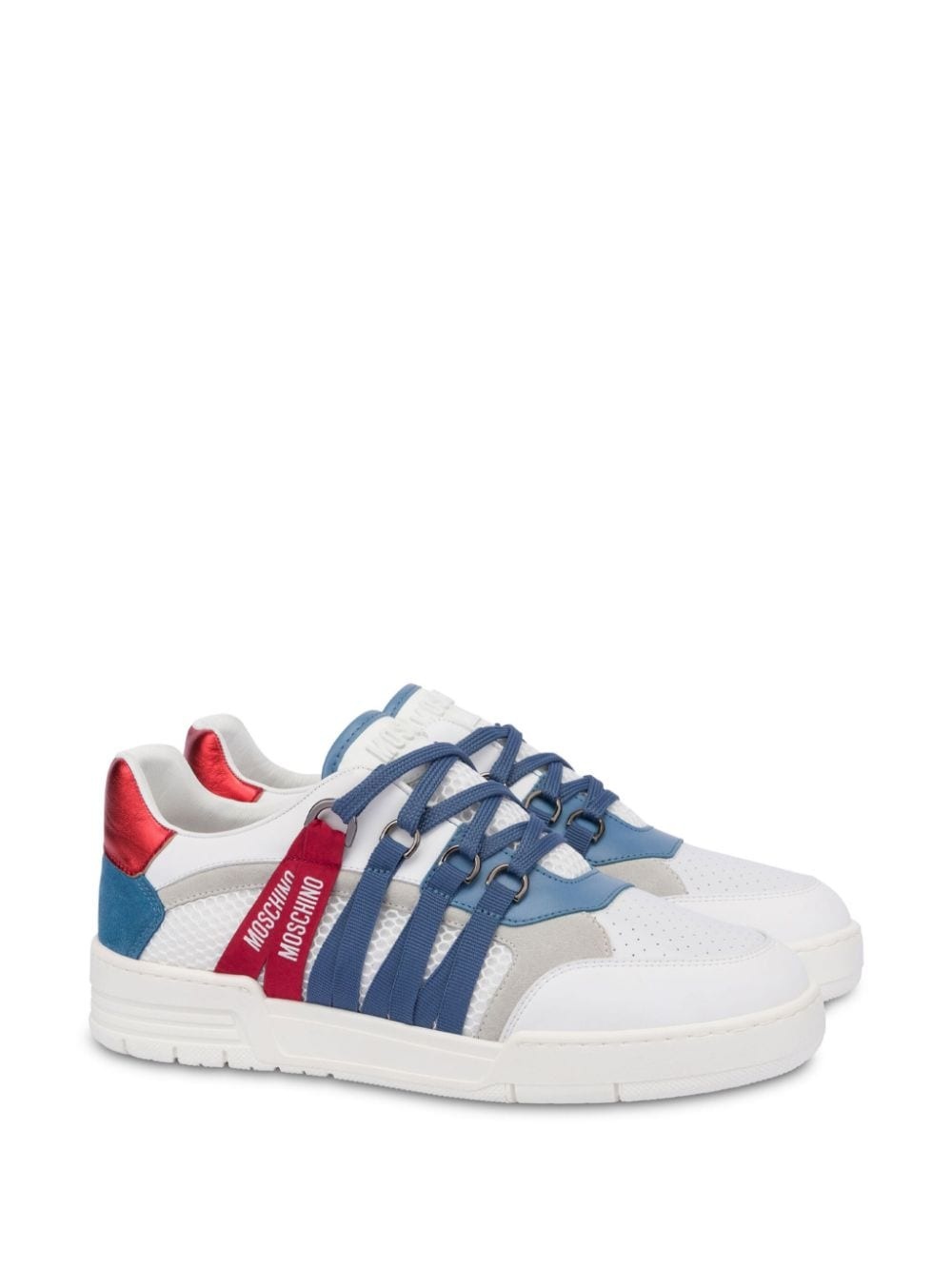 Streetball low-top sneakers Highlights - Red/white/blue - Leather - Mesh panelling - Logo print to the side - Logo-embossed tongue - Ribbon fastening - Slip-on style - Perforated toebox - Round toe - Flat rubber sole Made in Italy Composition Outer: Polyester 50%, Polyurethane 40%, Calf Leather 10% Sole: Rubber 100% Lining: Calf Leather 100%