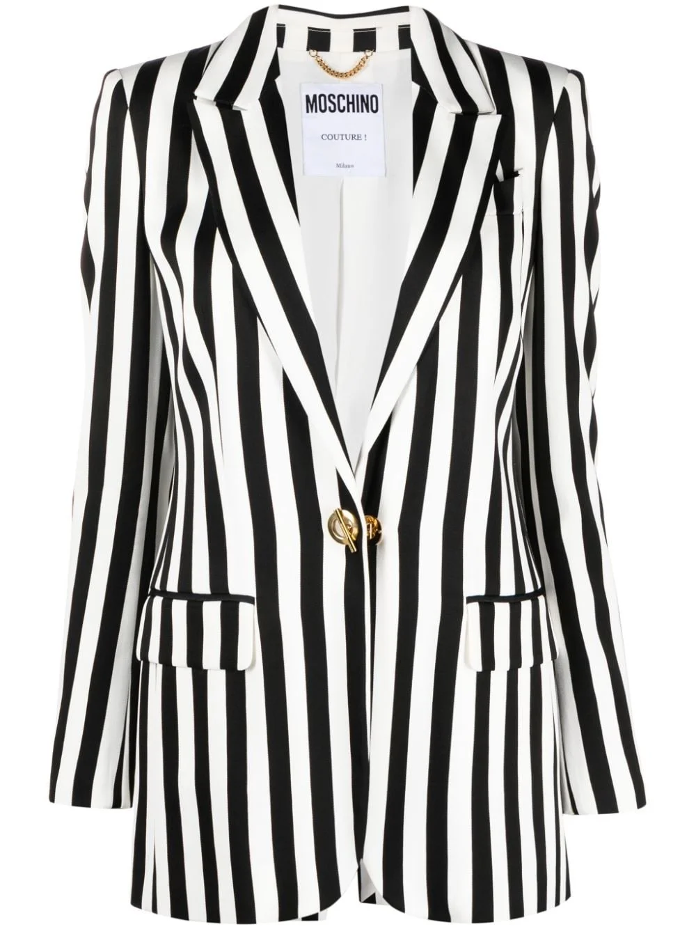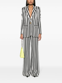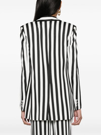 striped satin blazer Presented in black and white, this satin-finish blazer displays a vertical-stripe print. A single gold-tone button fastens the front. Highlights - White/black - Satin finish - Vertical stripe print - Logo-engraved gold-tone hardware - Peak lapels - T-bar fastening - Shoulder pads - Long sleeves - Buttoned cuffs - Chest welt pocket - Two side flap pockets - American rear vent - Straight hem - Full lining Made in Italy Composition Outer: Viscose 100% Lining: Acetate 83%, Silk 17% SIZE & FIT Model measurements Height 5 ft 11 in(1.8 m) Bust/Chest 30.7 in(78 cm) Hips 35.03 in(89 cm) Waist 24.4 in(62 cm) FittingInformation Designed for a slim fit that sits just away from the body offering a close yet comfortable fit The internal shoulder pads offer a structured shape Made from a midweight non-stretch fabric This piece fits true to size – take your usual size Washing instructions Dry Clean Only