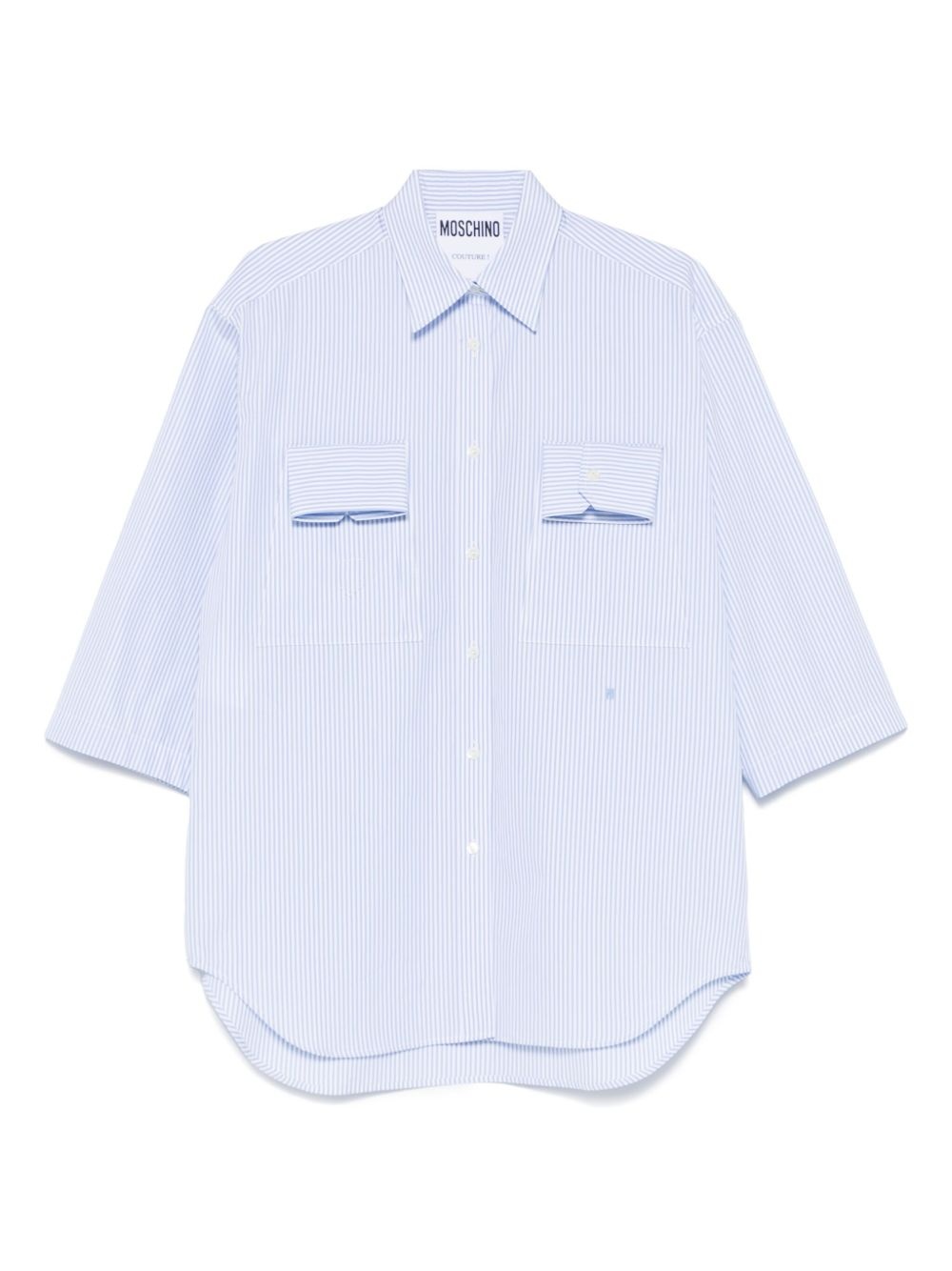 striped shirt Highlights - Cerulean blue - Front button fastening - Two chest flap pockets - Embroidered logo to the side - Classic collar Made in Italy Composition Cotton 100% SIZE & FIT Model measurements Height 5 ft 9 in(1.76 m) Bust/Chest 31.88 in(81 cm) Hips 35.43 in(90 cm) Waist 24.8 in(63 cm) FittingInformation Designed to be unstructured, offering a loose fit throughout Made from a midweight non-stretch fabric