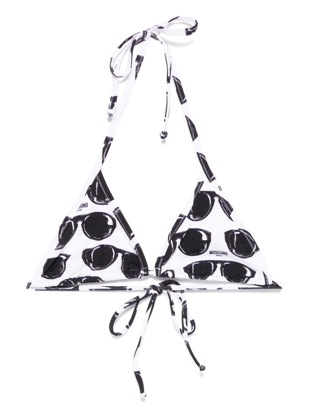 sunglasses-print bikini top Highlights - White - Halterneck tie fastening - Rear tie fastening - Triangle cup - Be mindful to try on swimwear over your own garments. Made in Italy Composition Lining: Polyamide 82%, Elastane 18% Outer: Polyamide 92%, Elastane 8%