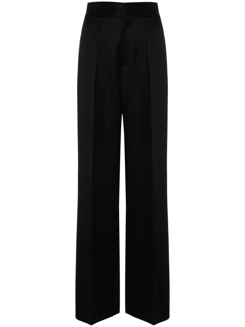 tailored trousers Highlights - Black - Virgin wool - Twill weave - Tailored cut - Concealed front button, hook and zip fastening - Pressed crease - Two rear welt pockets - Straight leg Made in Italy Composition Lining: Acetate 60%, Viscose 40% Outer: Virgin Wool 100% SIZE & FIT Model measurements Height 5 ft 10 in(1.77 m) Bust/Chest 33.07 in(84 cm) Hips 34.64 in(88 cm) Waist 23.22 in(59 cm) FittingInformation Designed with a wide-leg cut, these trousers allow for a close fit at the waist and offer a loose and roomy fit over the leg Made from a midweight non-stretch fabric This piece fits large – take one size down