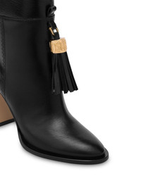 tassel-charm leather ankle boots Highlights - Black - Calf leather - Smooth grain - Ankle-length - Metal tassel detail - Pointed toe - High block heel - Leather sole Made in Italy Composition Lining: Calf Leather 100% Outer: Calf Leather 100% Sole: Calf Leather 100%