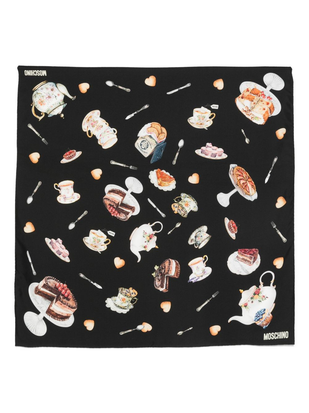 Tea Time-print silk scarf