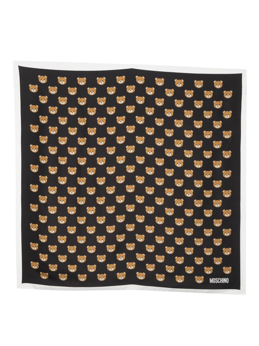Teddy Bear-print silk foulard black/brown/white silk signature Teddy Bear motif logo print to the side solid border square shape Made in Italy Composition Silk 100% SIZE & FIT Measurement LENGTH 35.43 in(90 cm) WIDTH 35.43 in(90 cm)
