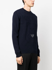 slogan-intarsia sweater Highlights - Navy blue - Cotton - Logo print to the front - Teddy bear print - Round neck - Long sleeves Imported Composition Cotton 100% SIZE & FIT Model measurements Height 6 ft 2 in(1.87 m) Bust/Chest 36.41 in(92.5 cm) Hips 35.43 in(90 cm) Waist 29.52 in(75 cm) FittingInformation This piece fits true to size. We recommend you get your regular size Cut for a relaxed fit Made with a mid-weight fabric Washing instructions Hand Wash