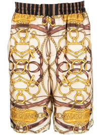 Teddy-print silk shorts white/beige silk signature Leo Teddy print chain-link print elasticated waistband two side slit pockets knee-length Made in Italy Composition Silk 100% SIZE & FIT Model measurements Height 6 ft 2 in(1.87 m) Bust/Chest 38.18 in(97 cm) Hips 36.61 in(93 cm) Waist 29.13 in(74 cm) FittingInformation This piece fits true to size. We recommend you get your regular size Designed for a slim fit at the waist and loose over the leg Made with a mid-weight non-stretch fabric Washing instructions Dry Clean Only