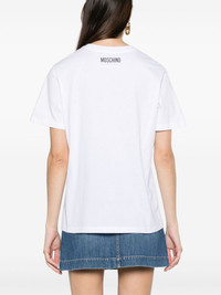 text-print organic cotton T-shirt Cut from soft organic cotton, this classic white T-shirt by Moschino is designed for a relaxed fit. It's defined by the contrasting all-caps slogan emblazoned across its front. Highlights - White - Organic cotton - Jersey texture - Text print to the front - Logo print to the rear - Crew neck - Short sleeves - Straight hem Imported Composition Organic Cotton 100% SIZE & FIT Model measurements Height 5 ft 11 in(1.8 m) Bust/Chest 31.49 in(80 cm) Hips 36.22 in(92 cm) Waist 25.59 in(65 cm) FittingInformation Designed for a relaxed fit, this piece allows for comfort and movement when worn Made from a midweight non-stretch fabric, this piece offers minimal elasticity when worn This piece fits true to size – take your usual size Washing instructions Hand Wash