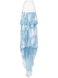 tiered train silk skirt Highlights - Sky blue - Silk - Tiered skirt - Draped detailing - Abstract pattern print - Train Made in Italy Composition Silk 100%
