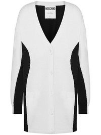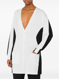 two-tone V-neck cardigan Highlights - Black/white - Virgin wool - Knitted construction - Two-tone design - V-neck - Front button fastening - Drop shoulder - Long sleeves - Ribbed cuffs - Straight hem - Long length Made in Italy Composition Virgin Wool 100%